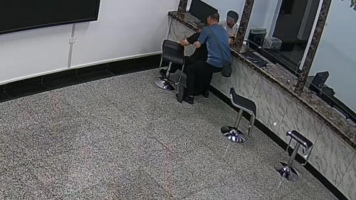 图为张炼在黑龙江双鸭山市办案时突发疾病时的监控画面