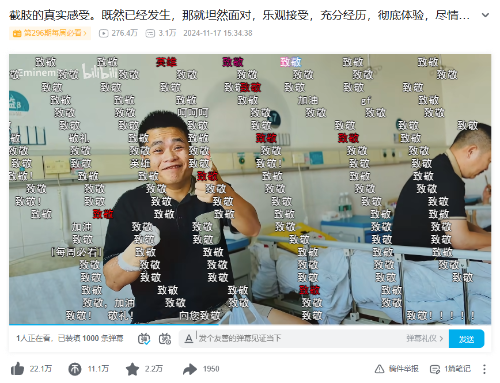 UP主@小何教官-铁手版 作品《截肢的真实感受。既然已经发生,那就坦然面对,乐观接受,充分经历,彻底体验,尽情享受。》