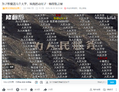 UP主@略靠谱旅社 作品《为了修复这几个大字,我竟然动用了一颗在轨卫星》