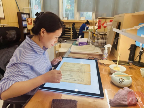 四川省图书馆的修复工作者在修复古籍。刘佳 摄