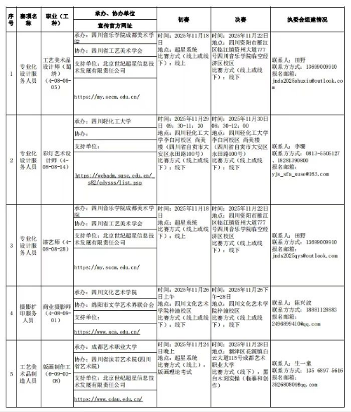 1.四川技能大赛—四川省第二届新文艺行业技能竞赛赛项安排及承办单位联系方式
