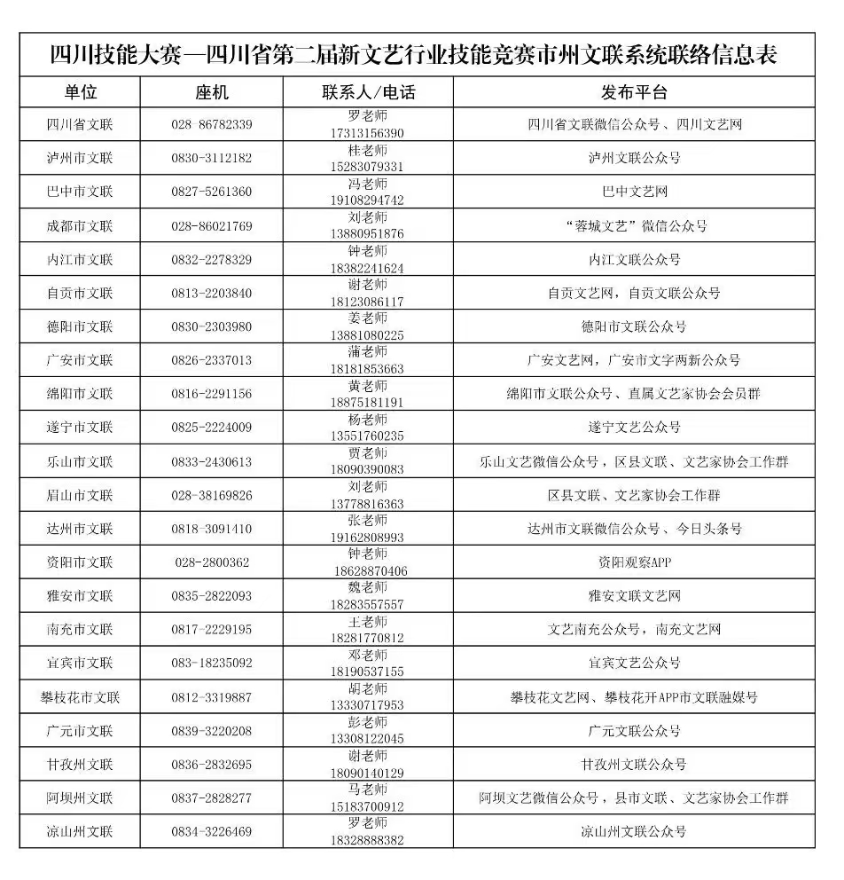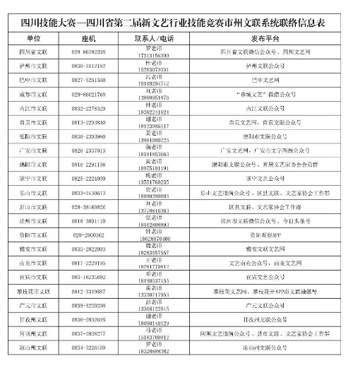 2.四川技能大赛—四川省第二届新文艺行业技能竞赛市州文联系统联系方式