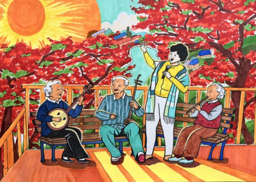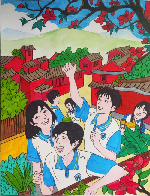 刘芷含、王露瑶、邓凯夫《彝家寨子的春天》
